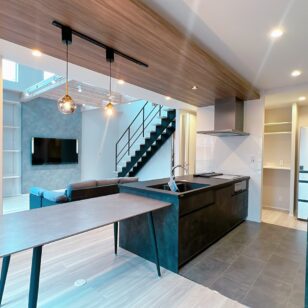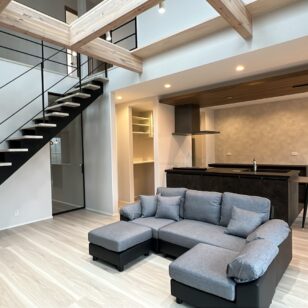 アイアン階段がアクセントになりデザイン性と居心地のよさを両立