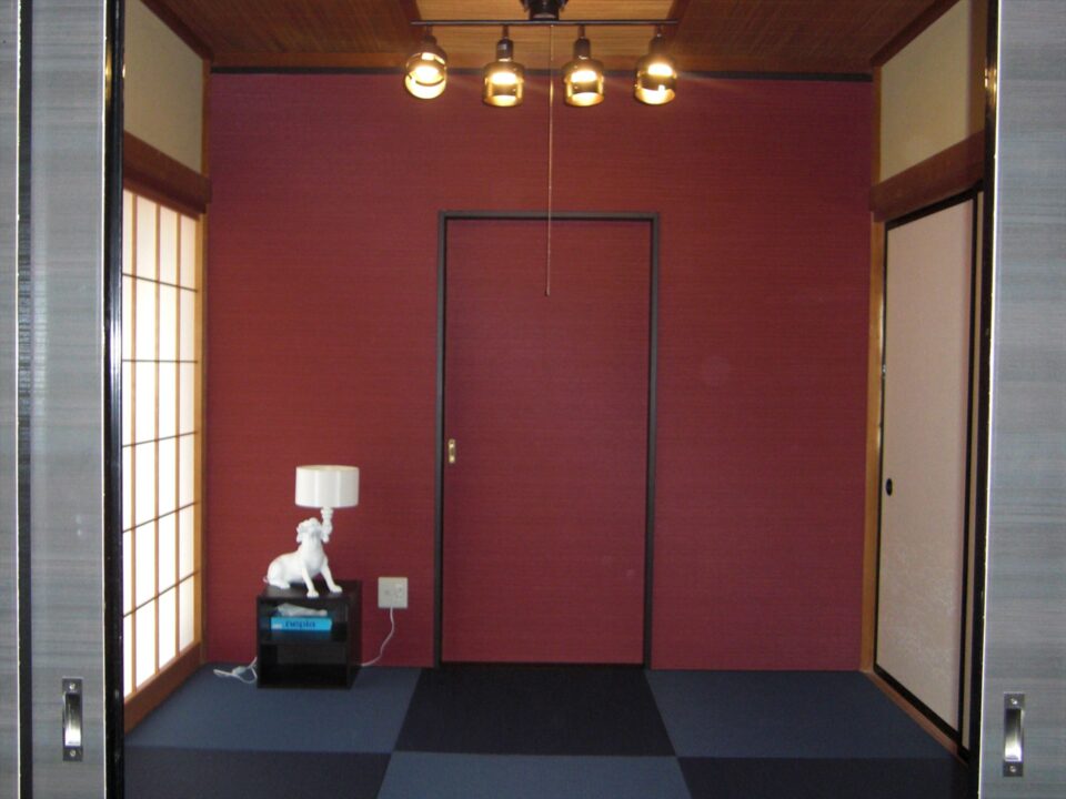 縁無畳とアクセントクロスの色合いも施主様のイメージ通りで進める事ができました。